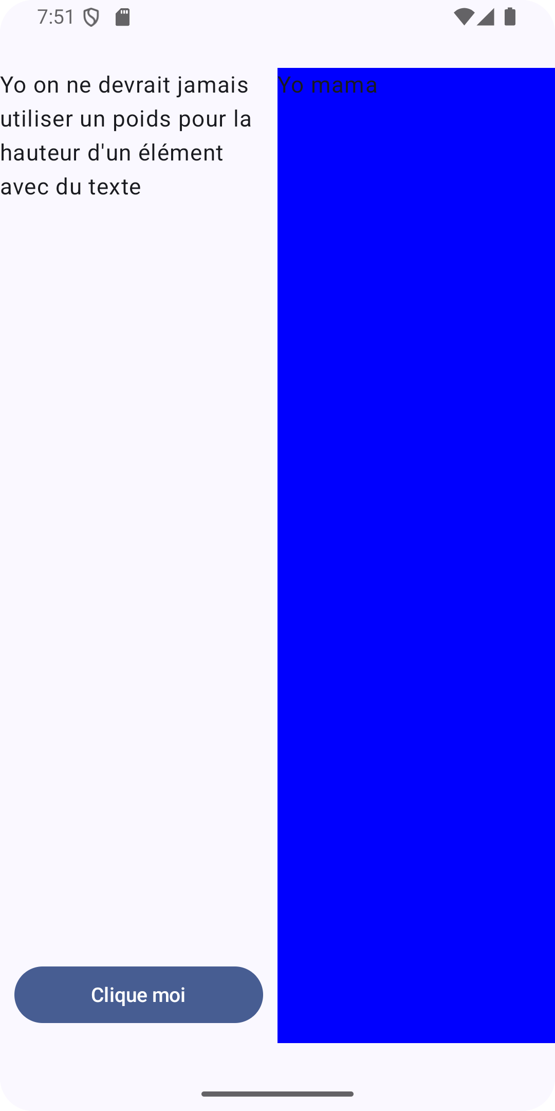 - on utilisera jamais fillMaxWidth ou fillMaxHeight, puisque le but est de partager l'espace entre les éléments