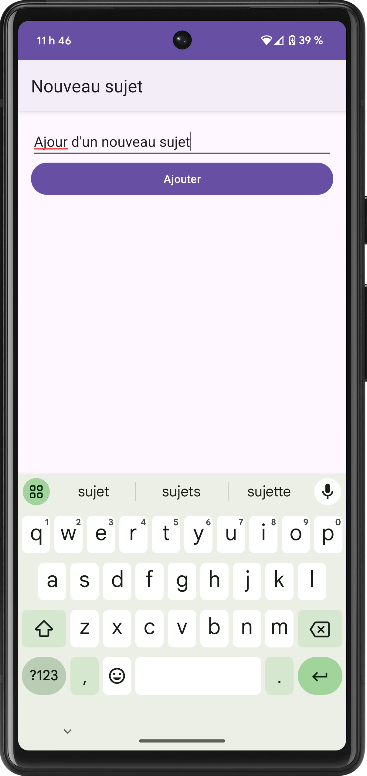 - 1 point Navigation vers la page d'ajout d'un sujet "Ajouter un sujet"