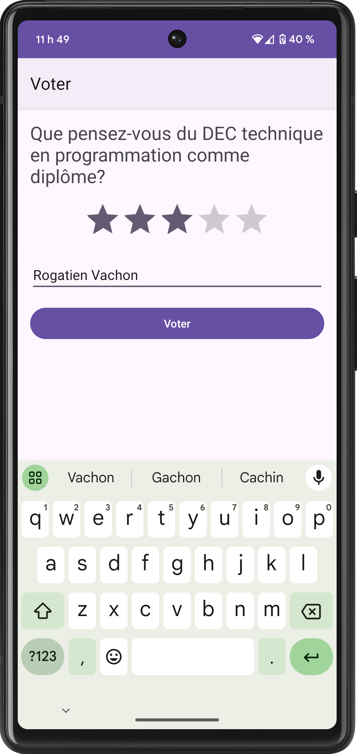 Si tu n'arrive pas à naviguer vers l'écran de vote et de l'écran des résultats à partir d'un élément de liste, tu peux ajouter des boutons pour t'y rendre directement. Nous pourrons alors au moins te donner des points pour ces activités.