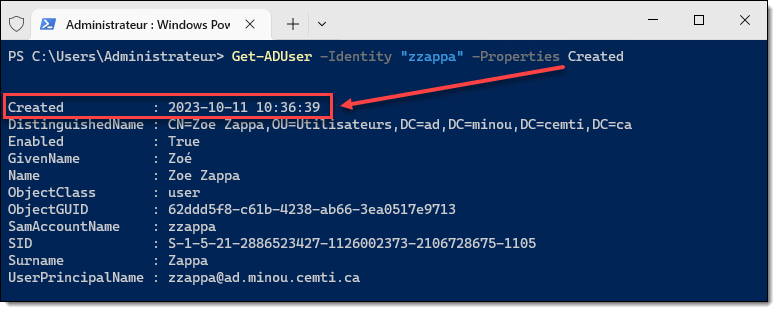 UserPrincipalName = "zzappa@ad.mondomaine.com"
