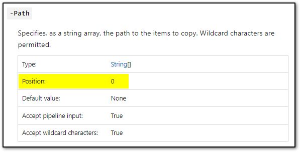 Par exemple, Copy-Item -Path C:\Minou\miaou.txt -Destination C:\Pitou\wouf.txt a le même effet que Copy-Item -Destination C:\Pitou\wouf.txt -Path C:\Minou\miaou.txt