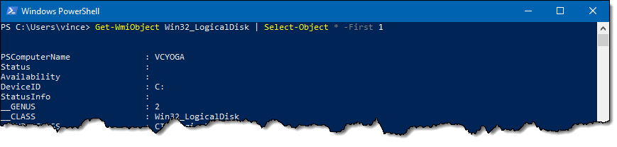 Il se trouve que par défaut, Get-WmiObject est formatée en liste plutôt qu'en tableau. Mais il s'agit bel et bien d'un objet et on peut le manipuler de la même manière que toutes les autres collections PowerShell.