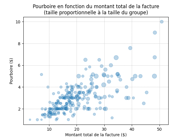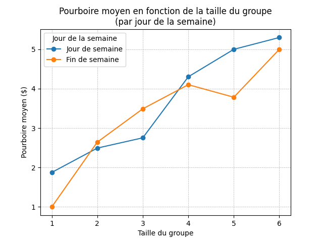 tip_par_personregroupé par taille de groupe (size) pour voir comment le pourboire par personne varie en fonction de la taille du groupe.
