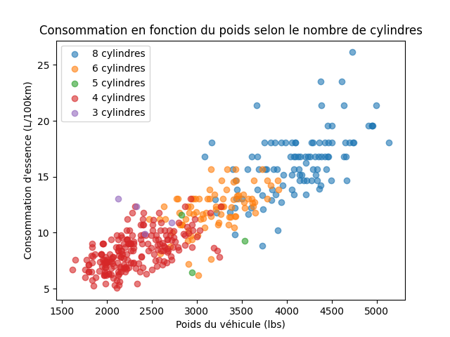 l_par_100kmen convertissantmpgen litres aux 100 km. - Générez ces 2 graphiques :