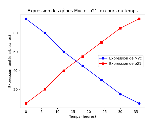 exp_gene_myc = [95, 80, 60, 45, 30, 15, 5] # Valeurs en Y pour le gĂšne Myc