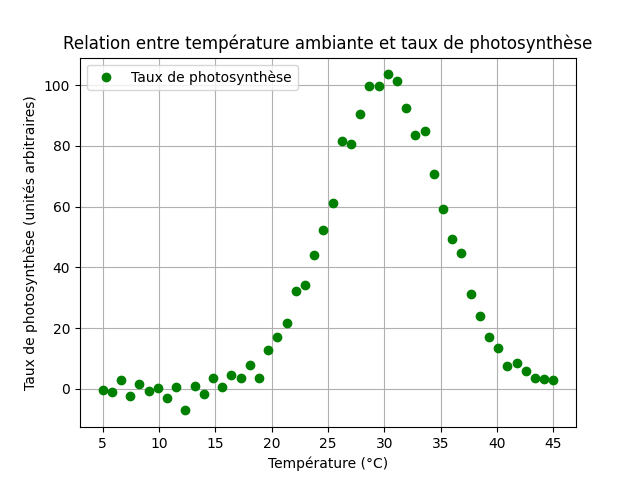 Les données nécessaires au graphique sont fournies sous la forme d'une liste par plante (1 donnée par jour) :