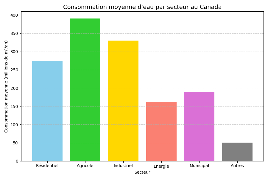 Il représente la consommation moyenne d'eau (millions de m3/an) au Canada.