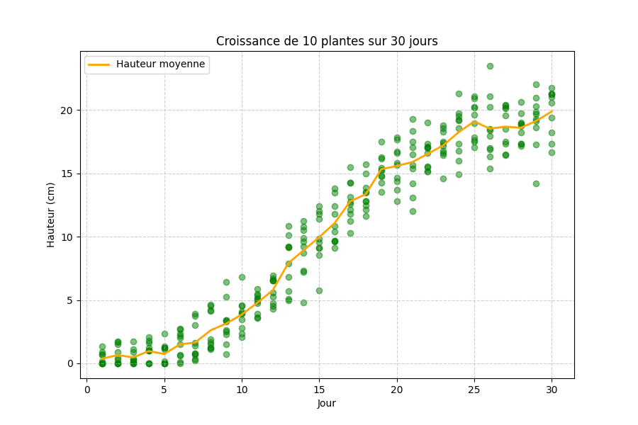 Il représente la croissance de 10 plantes sur 30 jours.