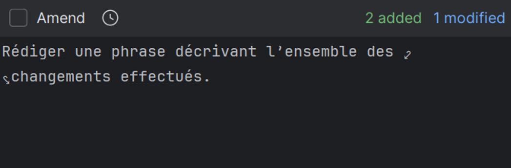 - Dans la zone de texte située en dessous, écrire un message clair décrivant les changements