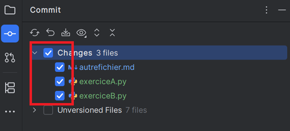 - Cocher tous les fichiers ou modifications que vous souhaitez inclure dans le commit