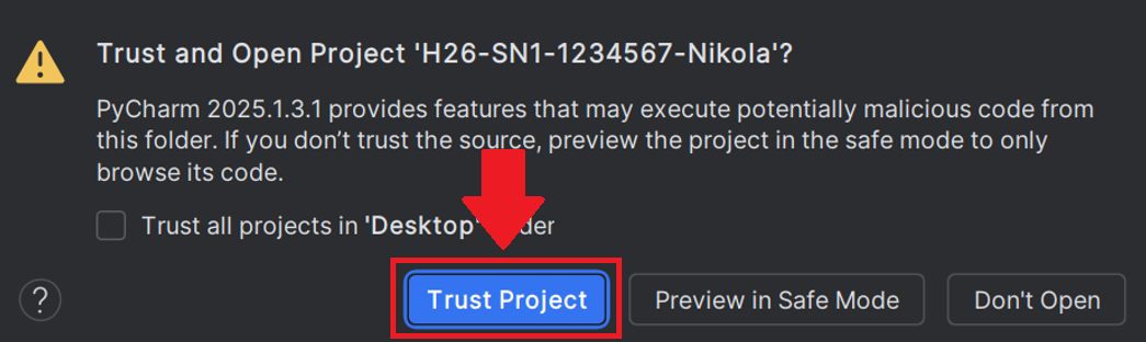 - Un message dâavertissement peut apparaĂźtre concernant lâexĂ©cution de code provenant dâune source inconnue. Cliquer sur « Trust » (en bleu)